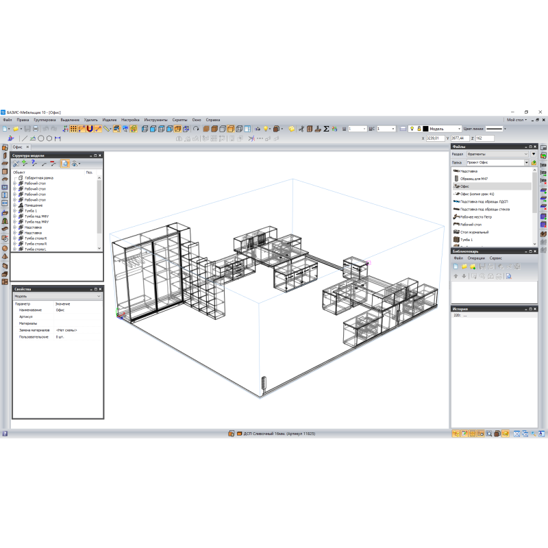 Базис-мебельщик - основной модуль системы БАЗИС. Он предназначен для создания изделий корпусной мебели любой сложности с возможностью автоматического получения полного комплекта чертежей и спецификации. Применение модуля Базис-Мебельщик позволяет сократить время проектирования и подготовки производства изделий в 10-15 раз по сравнению с ручной работой при значительном сокращении количества субъективных ошибок.